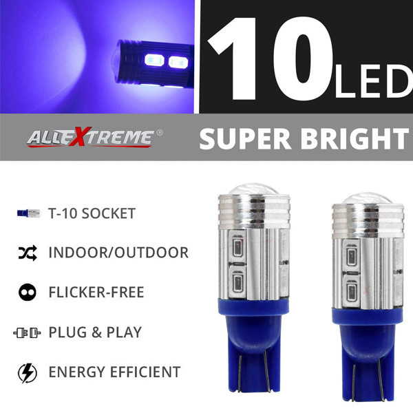 DIRECT REPLACEMENT – AllExtreme T10 LED lights are perfect for direct replacement in all T10 Wedge type sockets of almost all motorcycles and cars. NOT SUITABLE FOR MODELS BEFORE 2012. Common use for interior and exterior of Motorcycle, Scooter, Car, Truck, Trailer, RV, Boat, Marine, etc. ADD A COOL AND ROMANTIC FEEL - AllExtreme T10 LED Lights have soft and warm glow that illuminates a fairly large area. These lights are perfect for use in an assorted range of vehicle applications such as parking lights, vanity lights, dome lights, map lights, dashboard lights and trunk lights. An ideal choice to replace a variety of traditional halogen or incandescent bulbs including stock.