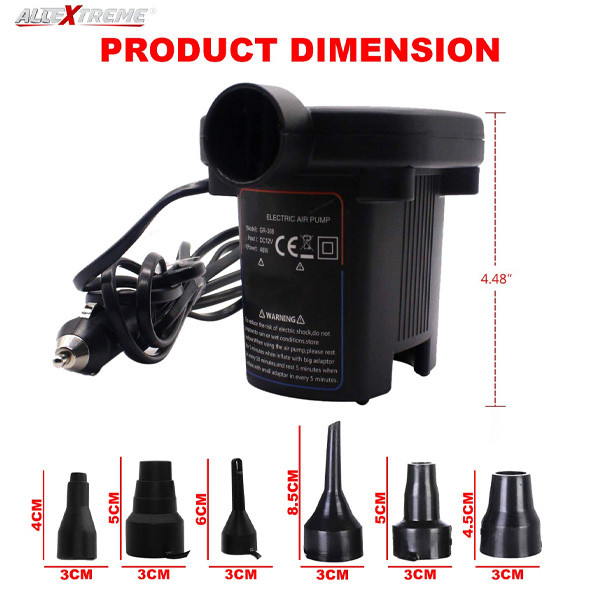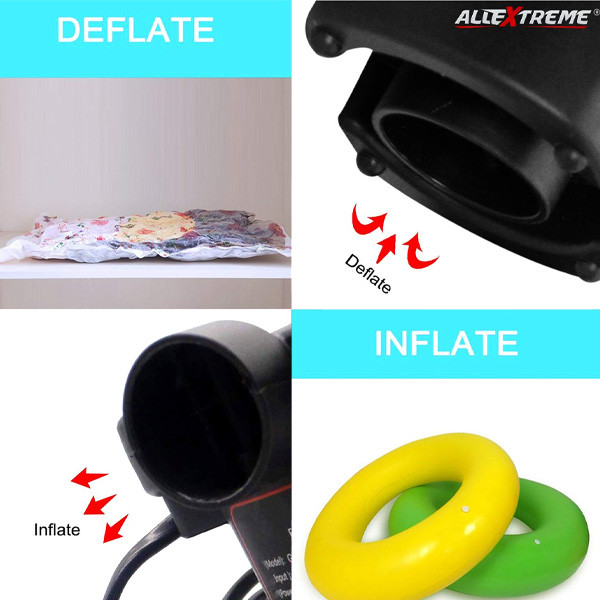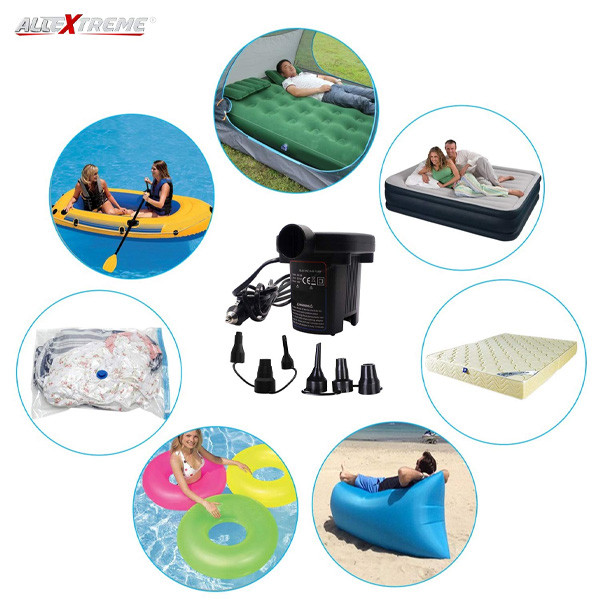 2-in-1 Inflating and Deflating Pump - AllExteme Quick Fill 12V-DC Air Pump can be used as an inflating and deflating the car air mattress. Plug it in your car cigarette lighter spot and inflate your comfortable air bed in the car itself. For deflating the bed, all you have to do is to put the deflating nozzles in the air inlet of the air mattress and switch the pump on Three Interconnecting Nozzles for Deflation and Inflation Each – With our air pump, you get 3 interconnected inflating and deflating nozzles. These nozzles can be used to inflate and deflate almost every inflatable surface. You can use it to fill the air in car air mattress, inflatable swimming rings and life jackets, air jackets, kids toys, etc. All you have to do is to plug the pump in cigarette lighter spot of any car and put the nozzle in the air inlet of any soft inflating surface