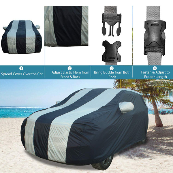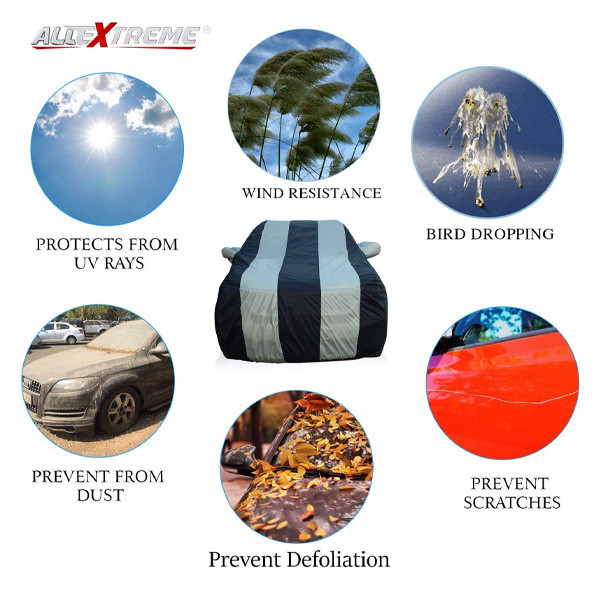 CAR BODY COVER: AllExtreme Car Cover is designed to offer 360° protection to your ride against dust, water, scratches, wind, bird droppings, etc. Besides, it will also protect the paint, shine & rubber trims of your car for years to come. MADE TO LAST YEARS: Our rain cover is manufactured with quality-tested polyester to offer utmost resistance against all elements that can be harmful for your ride. It completely fits down to the ground and wraps around the body. EASY TO USE: Achieving a tight fit is effortless with this dust cover as it can wrap itself with the body contours of your Car , all thanks to its elasticized hem & buckle lock. You will realize how great it feels to find your car clean, shining and ready.