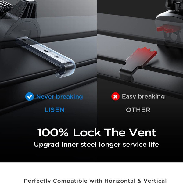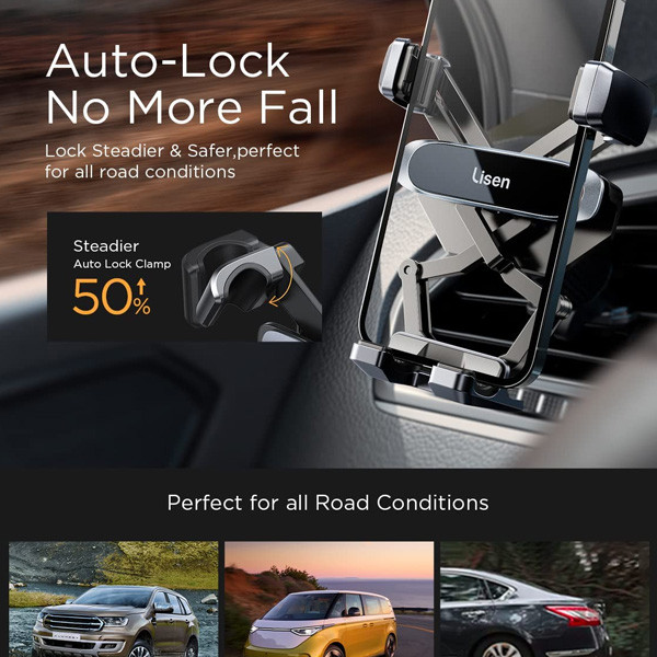 The Easiest Use, Just Slide Cradle Boom and Go: Folding gravity car phone holder mount is no need for buttons when using, only 2 fingers are needed to hold your phone then slide in/put out easily, you can have the simplest operation and a strong & stable grip, by gravity stable auto-lock phone. Driving enjoys the silky experience. When the vent phone mount for the car is retracted, perfectly fits your car like an ornament