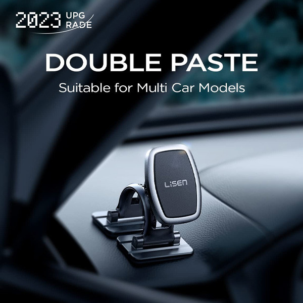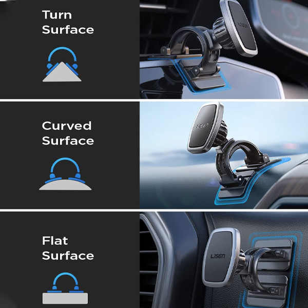 With 2 3M adhesive pads, 6 magnets and an adjustable arch bridge design, this is definitely the most revolutionary magnetic phone car mount on the market. 2 sticky pads firmly stick the mount to any flat or curved surface. 6 magnets can hold all large mobile phones with metal plates. Arch bridge adjustment design can provide a larger and better field of vision.