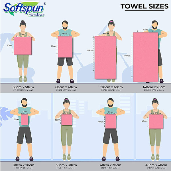 MEDIUM SIZE - 40x40 Cms, Plush 340 GSM, 80% Polyester 20% Polyamide, 5 Piece Towel Set. Blue color with rounded corners to prevent fraying. WHAT YOU CAN USE THEM FOR? SOFTSPUN MICROFIBER CLOTH is highly absorbent, lint-free and streak-free. Highly effective microfiber captures dust, dirt and debris. They can be used in many cleaning jobs from using them as your kitchen dishcloth, washcloth, dish, drying cloth, household cleaning cloth to dusting cloth, from cleaning your home to your automotive. They are safe to use on all hard surfaces whether wet or dry. These cleaning cloths are essential in your daily cleaning.